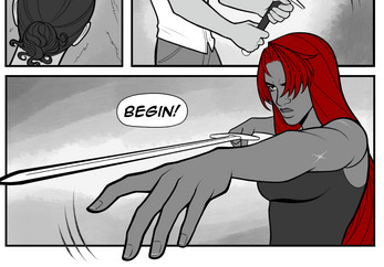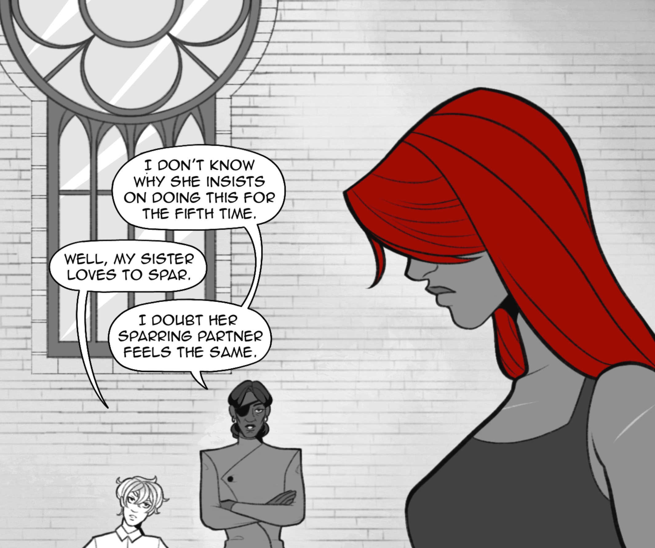 Crimson and Eric engage in their 5th sparring match of the early morning. Headmaster Lorum and Crimson’s younger brother, Chester, spectate the two. As Crimson seems to be overpowering Eric, he briefly breaks from her hold. Wonder who’ll win? Find out now!